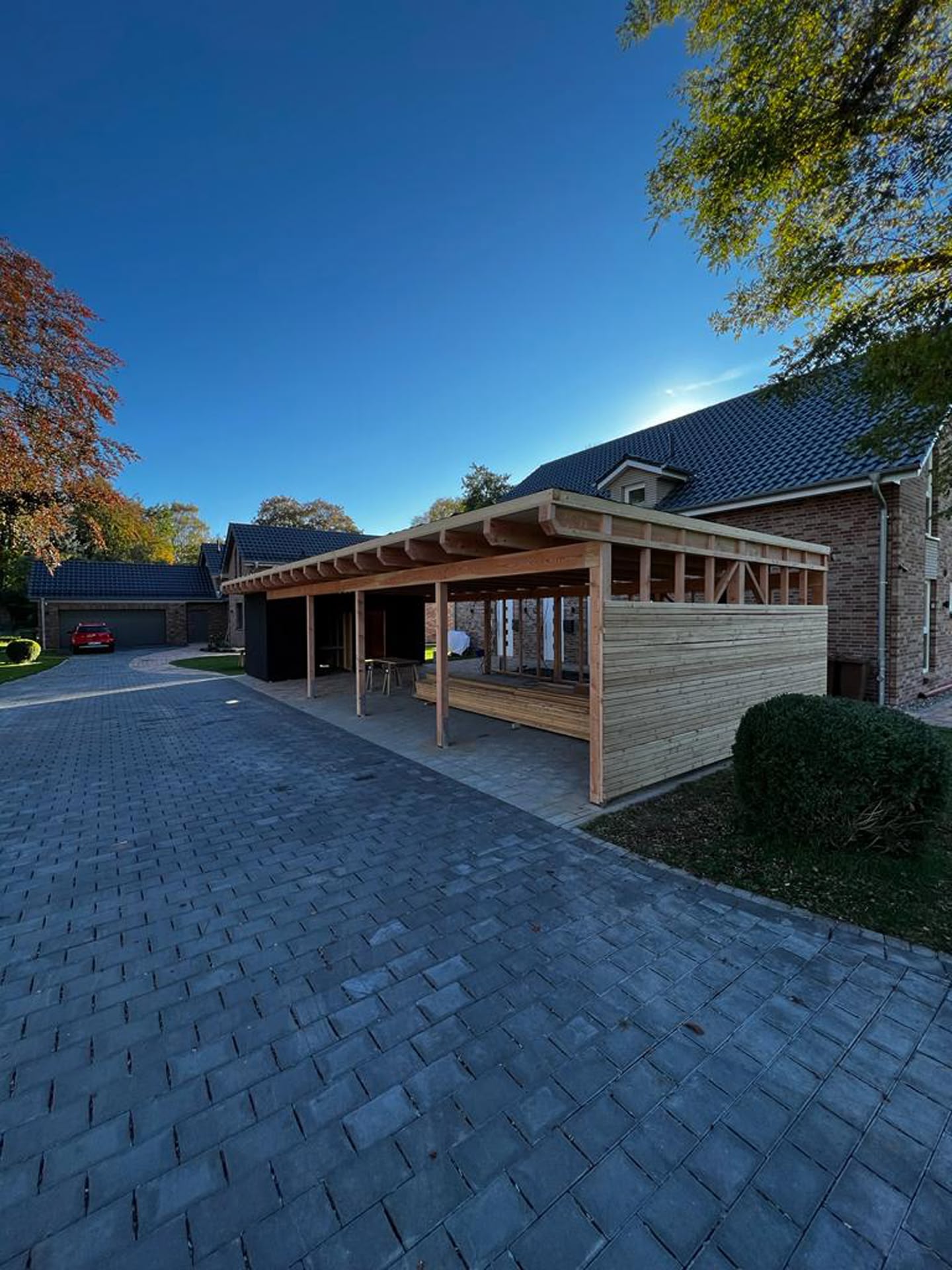 Wir setzen Ihre Wünsche maßgeschneidert um. Von Carports und kompletten Dachstühlen bis hin zu Innenausbau mit Fenstern und Innentüren – alles wird von uns genau nach Ihren Vorgaben realisiert. Wir verlegen auch Holzfußböden und führen Bauklempnerarbeiten, wie Dachrinnen, aus.